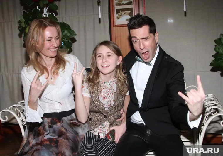 Максим Покровский, его супруга Татьяна и дочь Таисия на презентации клипа «Съешь мое сердце»