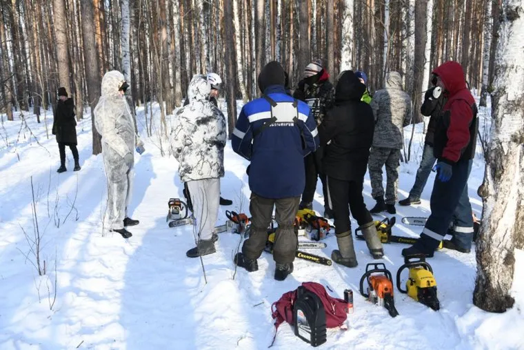 Рабочие с бензопилами пришли в рощу утром 11 февраля