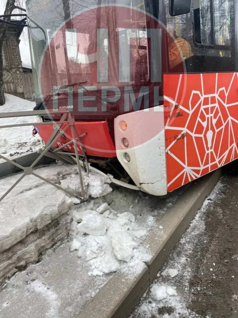 В Перми автобус с пассажирами влетел в ограждение. Фото