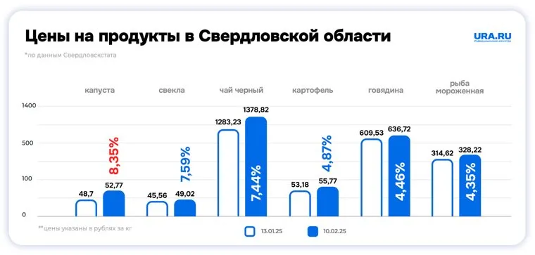 В Свердловской области капуста подорожала на 8,35%, а черный чай на 7,44% за месяц. Аналитика опубликована на сайте Свердловскстата.
