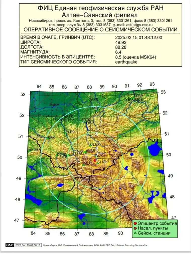 Землетрясение магнитудой 6,4 произошло на территории Республики Алтай. Об этом сообщает МЧС по Республике Алтай.