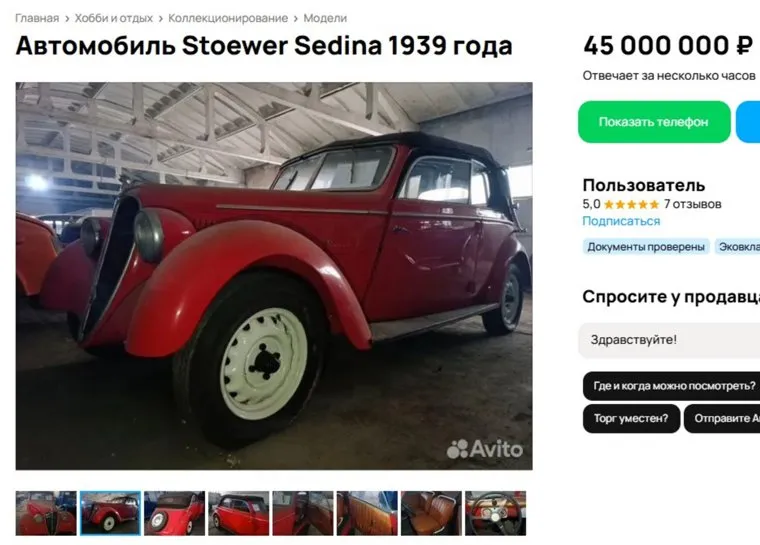 Фото: скрин с сайта «Авито» https://www.avito.ru/chelyabinsk/kollektsionirovanie/avtomobil_stoewer_sedina_1939_goda_4437111239