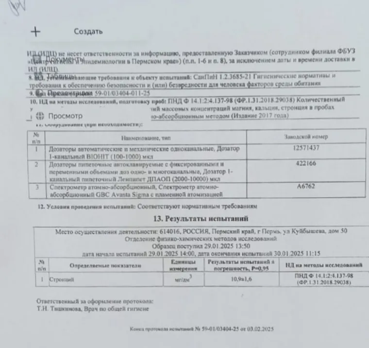 Лабораторный анализ показал наличие в питьевой воде стронция