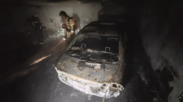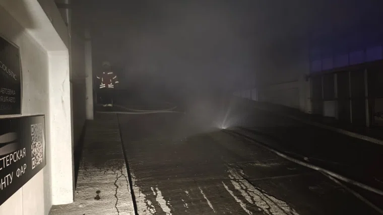 В Екатеринбурге после хлопка пожар охватил стоянку возле ТЦ «Комсомолл». Фото
