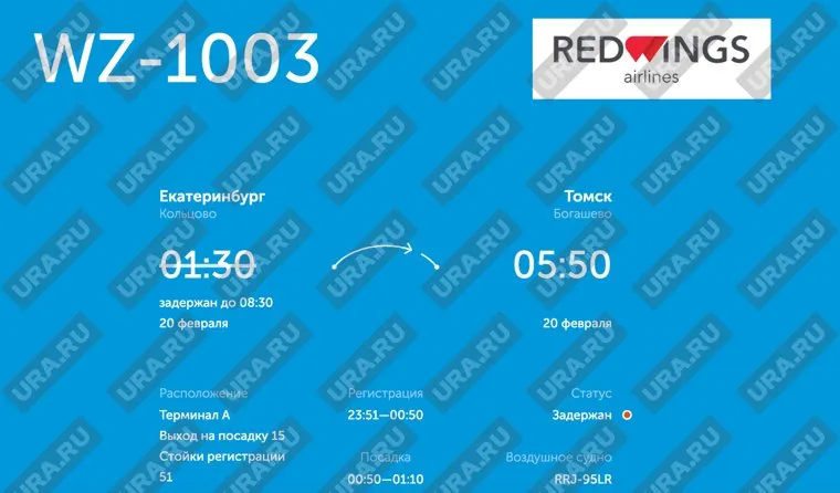 Red Wings задержала рейс из Екатеринбурга до Томска на семь часов. Скрин