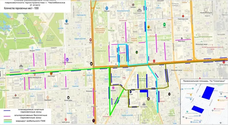 Опубликована схема платных парковок в центре Челябинска. Карта
