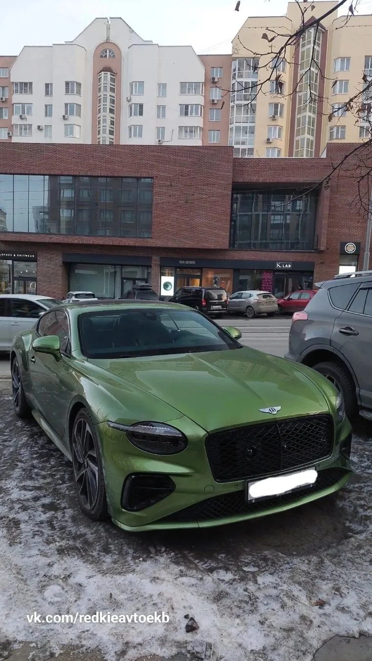 В центре Екатеринбурга заметили зеленый спорткар Bentley Continental GT последнего поколения на ул. Радищева. На российских агрегаторах его цена начинается от 42,5 миллионов рублей.