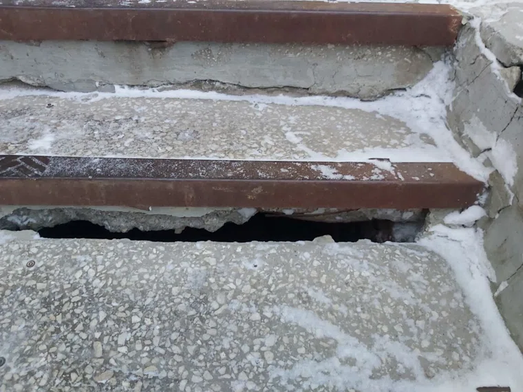 «Мне пообещали, что лестницу отремонтируют, сделают поручни, лавочку у подъезда поправят и закрепят. В управляющей компании сейчас полностью убрали лавочку, она исчезла. А на лестнице попробовали поставить противоскользящие коврики, но от этого ступени начали крошиться еще больше», — рассказал челябинец. В результате еще за две недели никаких положительных изменений не было.