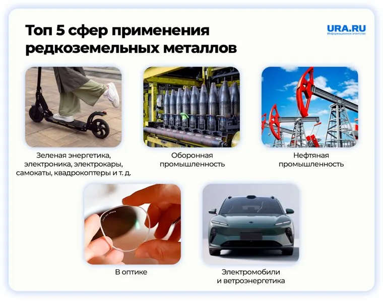 Основная сфера применения — зеленая энергетика, электроника, производство электрокаров, квадрокоптеров и другой техники. Эти элементы используются в экранах телефонов, наушниках, динамиках и магнитах. Оборонная промышленность — второй крупный потребитель редкоземельных металлов. В России они также востребованы в нефтяной отрасли как катализаторы для переработки нефти, в металлургии — для создания спецсталей, в оптике — для полировки стекол и в автомобилестроении — для производства машин, соответствующих экологическим стандартам Евро-5 и Евро-6.