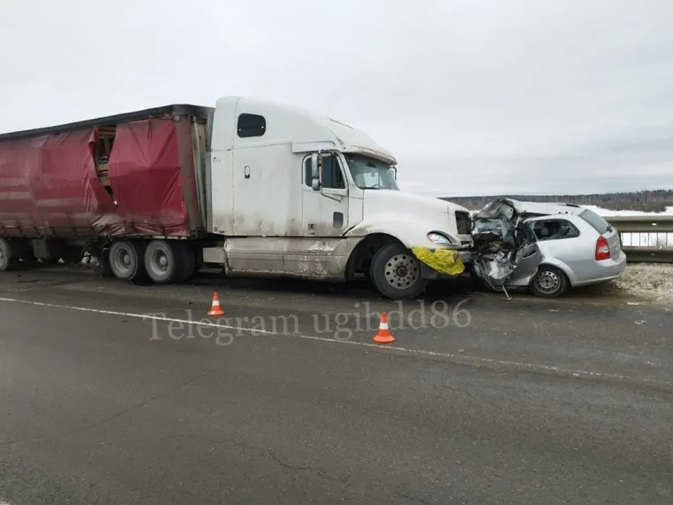 В ХМАО погиб водитель машины, столкнувшись с большегрузом. Фото