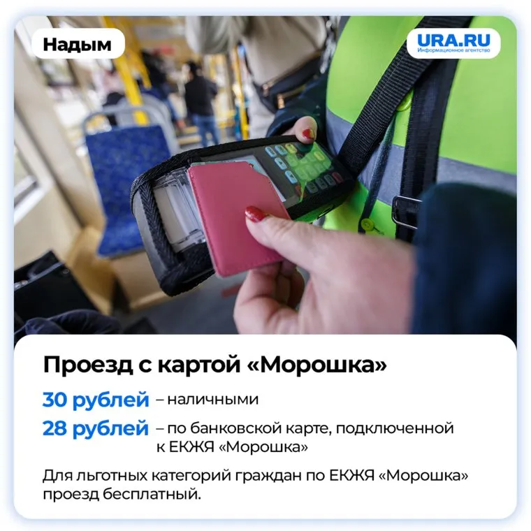 «В настоящее время стоимость проезда за наличный расчет составляет 30 рублей. По банковской карте, подключенной к ЕКЖЯ „Морошка“, — 28 рублей, для льготных категорий граждан по ЕКЖЯ „Морошка“ проезд бесплатный», — ответили в Надыме.