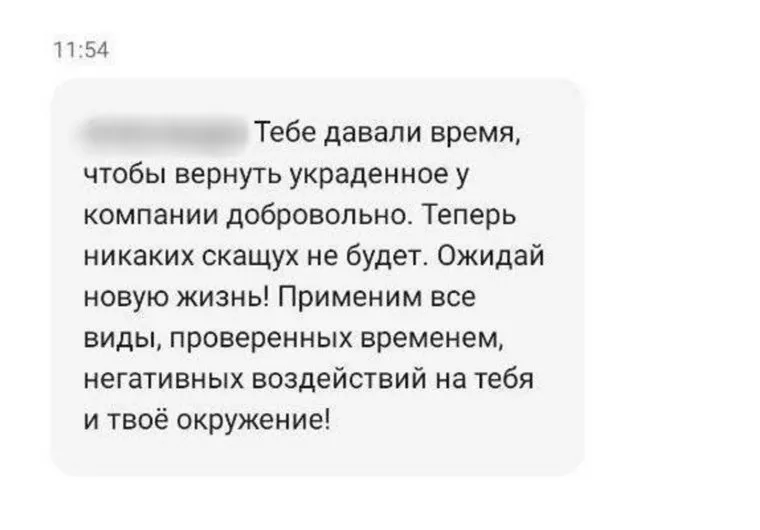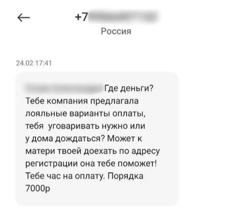 «Злоумышленники отправили несколько сообщений с угрозами моей матери. Требовали вернуть какой-то долг, хотя никаких кредитов она никогда не брала», — рассказал собеседник агентства на условиях анонимности.