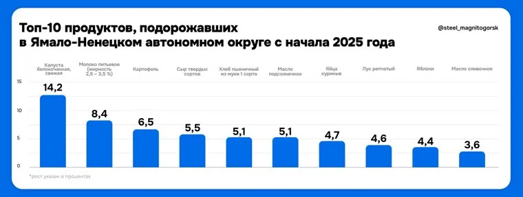 Топ-10 продуктов, подорожавших на Ямале с начала года. Инфографика