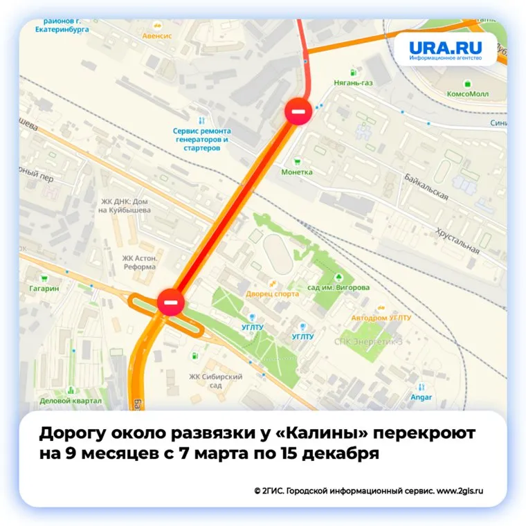 В Екатеринбурге перекроют проезд по части улицы Комсомольской с 7 марта по 15 декабря. Ограничения введут для строительства дорожной развязки у концерна «Калина», рассказали в пресс-службе мэрии.