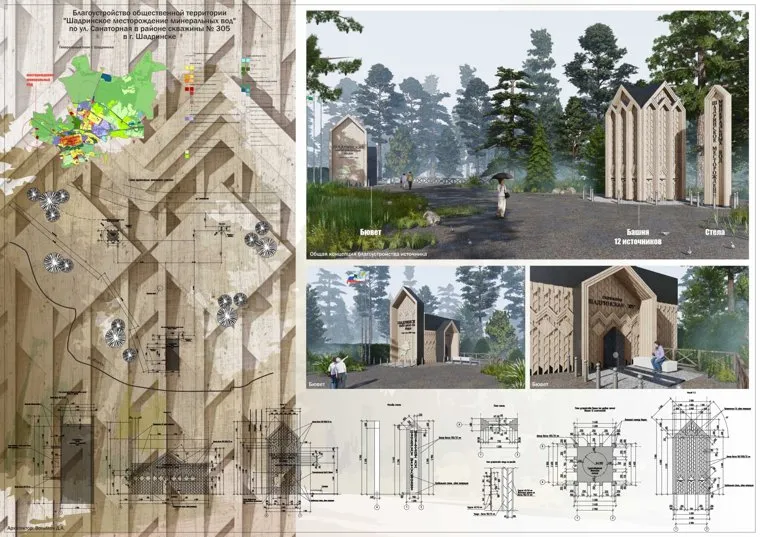 «Подготовил предложение по благоустройству минерального источника в г. Шадринске. Оказывается, месторождение таит в себе большое количество разведанных скважин», — пишет в посте Вольман. В комментариях архитектор уточнил, что проект станет переосмыслением стрельчатой арки.