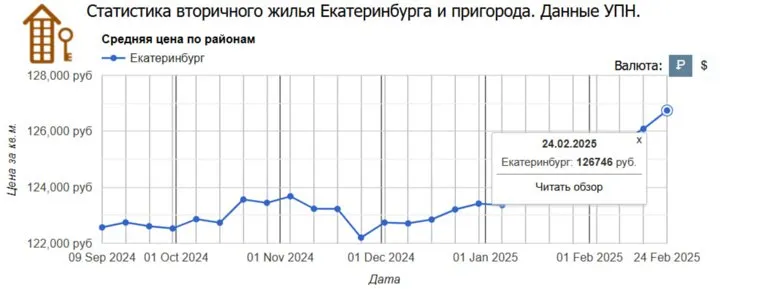 В Екатеринбурге стоимость квадратного метра на вторичном рынке превысила 126 тысяч рублей — это новый рекордный максимум. Жилье дорожает с начала года, в течение февраля цена выросла на 1,5%. Статистику опубликовала Уральская палата недвижимости.