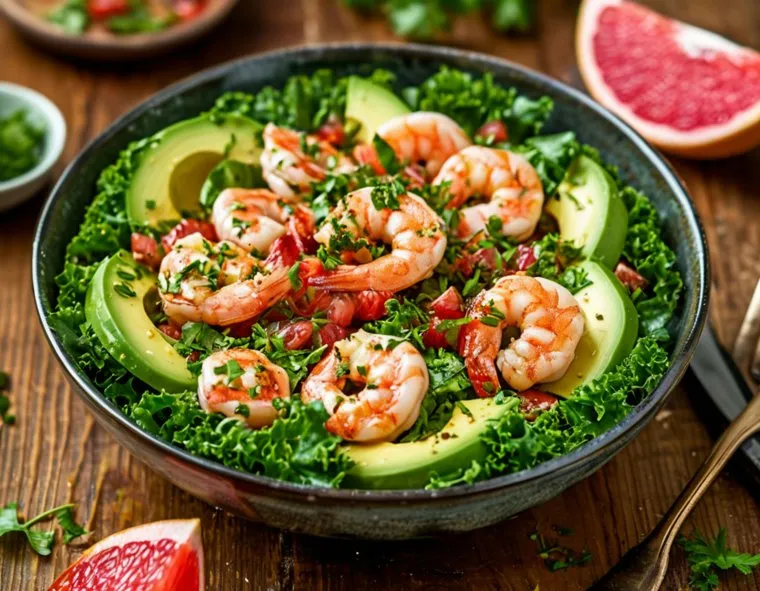 Салат с креветками, авокадо и грейпфрутом