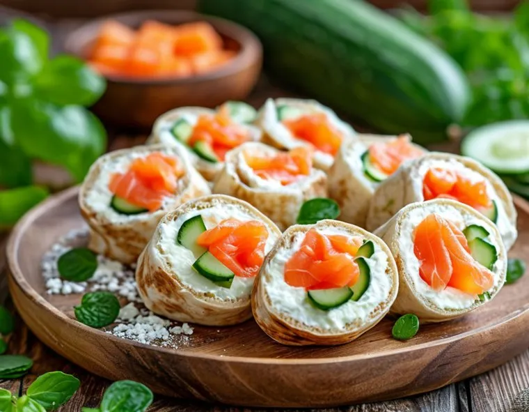 Роллы из огурцов с творожным сыром и лососем