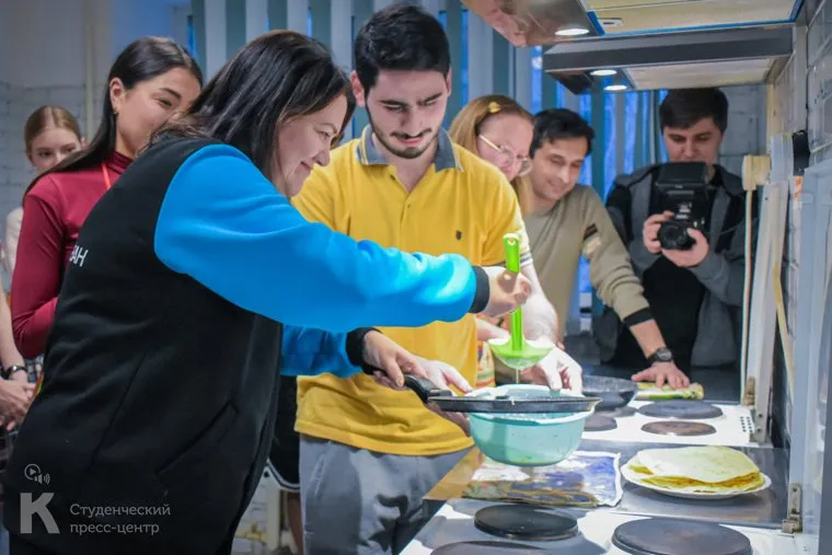 В КГУ учили иностранных студентов готовить блины на Масленицу