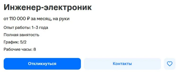 Заработную плату от 110 тысяч рублей предлагают инженеру-электронику. Всем рабочим предоставляют медицинское страхование, а иногородним — общежитие.