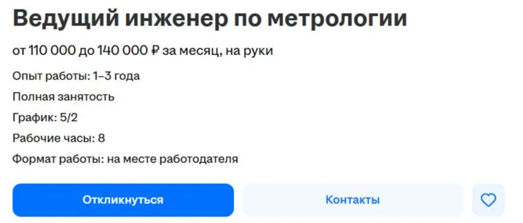 На предприятие требуется инженер по метрологии. Ему готовы платить до 140 тысяч рублей в месяц. Для успешного трудоустройства нужен опыт работы от года до трех лет. Сотруднику также обещают квартальную премию в размере 90% от оклада.