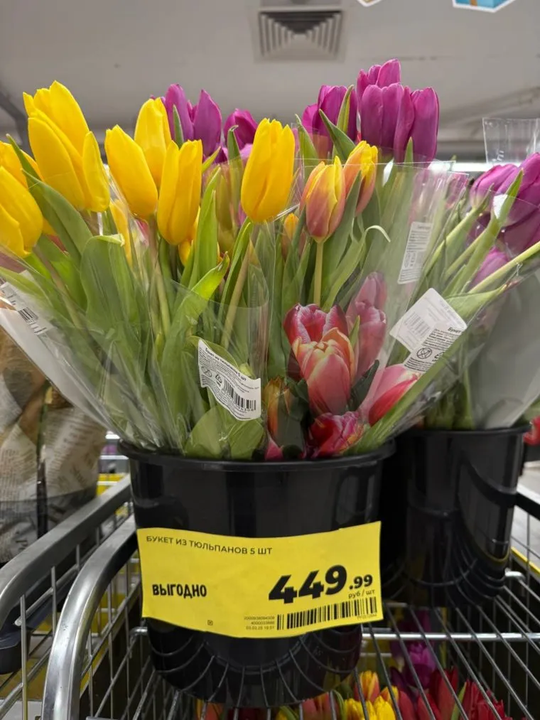 «В прошлом году букет из 5 тюльпанов в одном из сетевых супермаркетов стоил всего 279 рублей. Сейчас его цена достигла 515 рублей, что представляет собой подорожание на 46%», — указано в посте.
