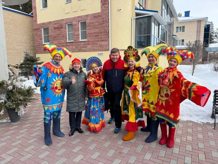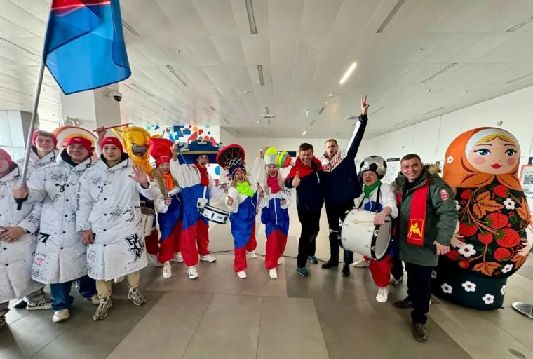 В Златоусте телекомментатора встречали глава округа Олег Решетников и аниматоры