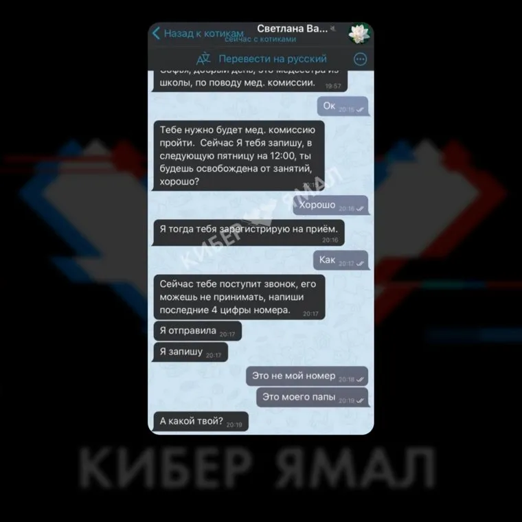«Ученикам одной из городских школ пришло сообщение в Telegram. Мошенники представлялись школьной медсестрой и предлагали записать подростков на медосмотр. Дети не стали продолжать общение с неизвестным и обратились к родителям — это их и уберегло», — сообщает источник. Как следует из скриншотов переписки, злоумышленники просили назвать последние четыре цифры входящего звонка.