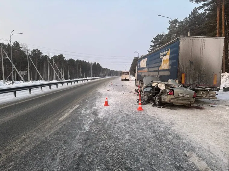 «Автомобиль „Тойота Авенсис “ въехал в заднюю часть попутного автобуса, ехавшего без пассажиров. После этого автомобиль отбросило на стоящий большегруз с полуприцепом. В „Тойоте“ ехала семья из Тобольска. В результате ДТП погибла 44-летняя пассажирка автомобиля, ее 10-летний сын с тяжелыми травмами доставлен в лечебное учреждение. Водитель „Тойоты“ не пострадал», — говорится в сообщении.