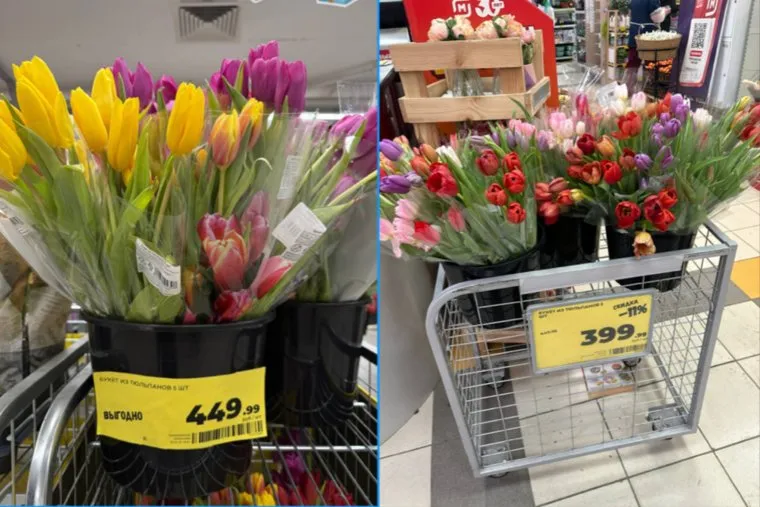 В Перми сетевые супермаркеты начали снижать цены на букеты из тюльпанов. Композиция из пяти цветов подешевела на 11%. Об этом сказано на ценниках в пермских магазинах.