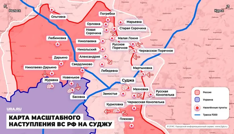 Как выглядит масштабное наступление армии РФ на курскую Суджу. Карта