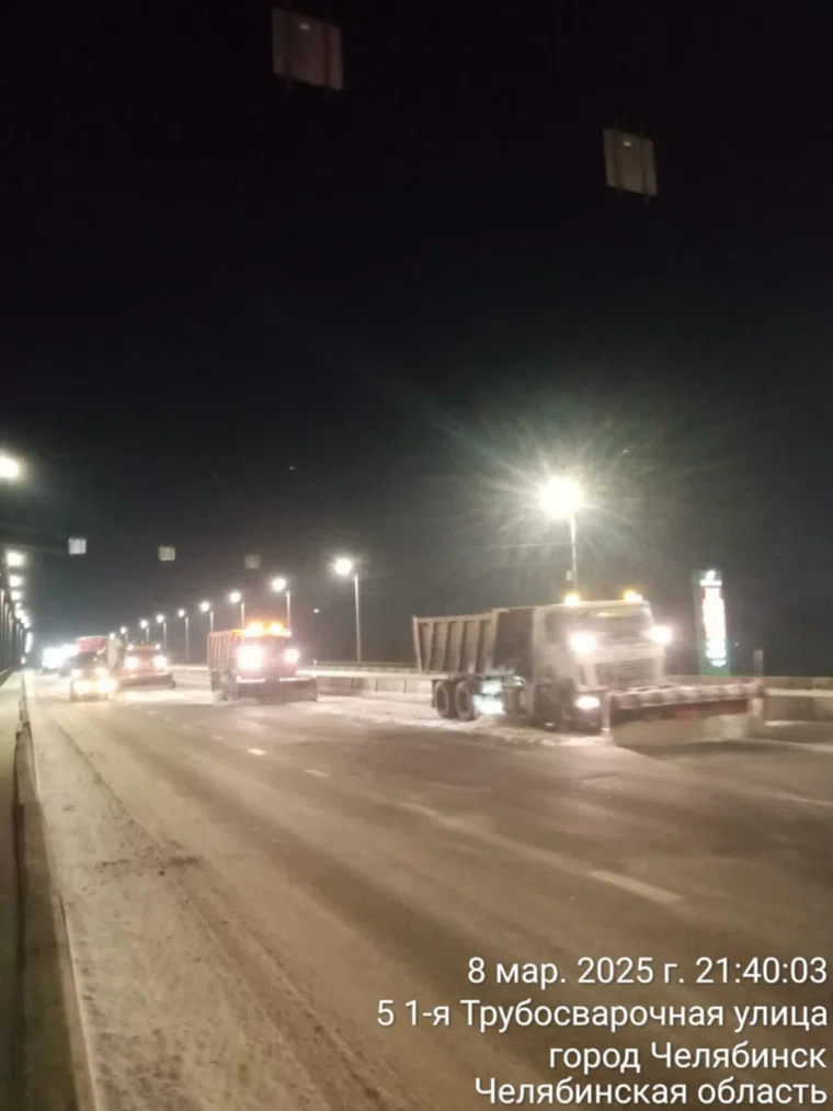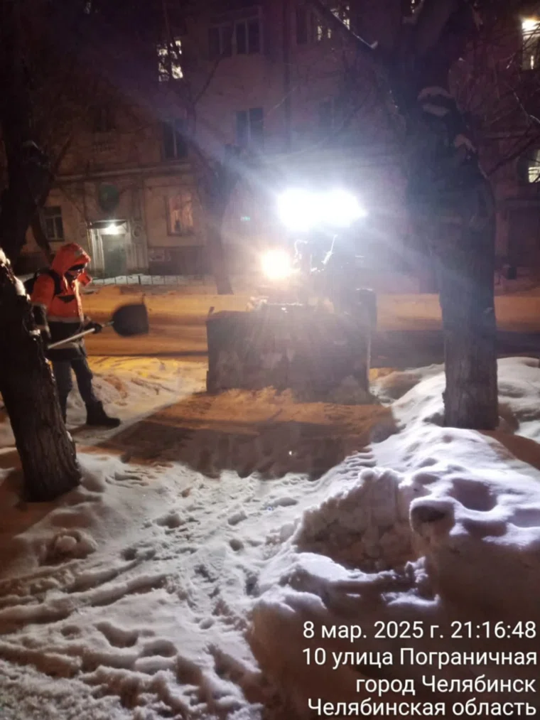 «Дорожная техника и специалисты продолжают вывоз снега. Так, в частности, уборка в вечерние часы 8 марта продолжалась в Ленинском районе», — уточнили в мэрии Челябинска.