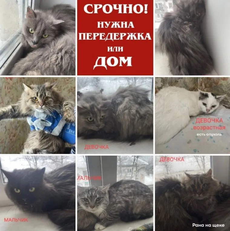 В съемной губахинской квартире остаются еще восемь животных, два мальчика и шесть девочек. Потенциальных хозяев заранее предупреждают о старой кошке с опухолью и другой — пугливой, которой надо регулярно обрабатывать рану.