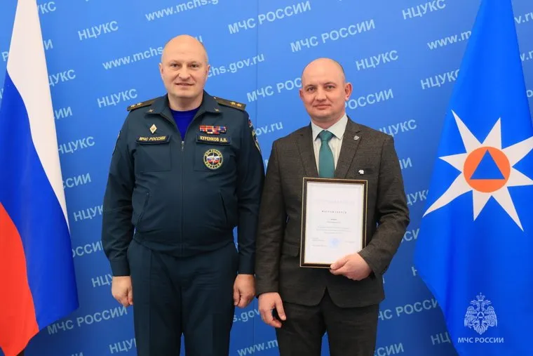 Испытателя Сергея Комова глава МЧС Александр Куренков наградил лично