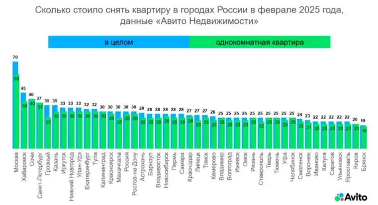 В среднем в городе квартиры сдаются за 25 тысяч рублей в месяц