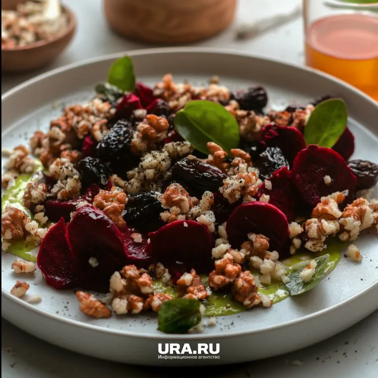 Салат из печеной свеклы с черносливом и грецкими орехами