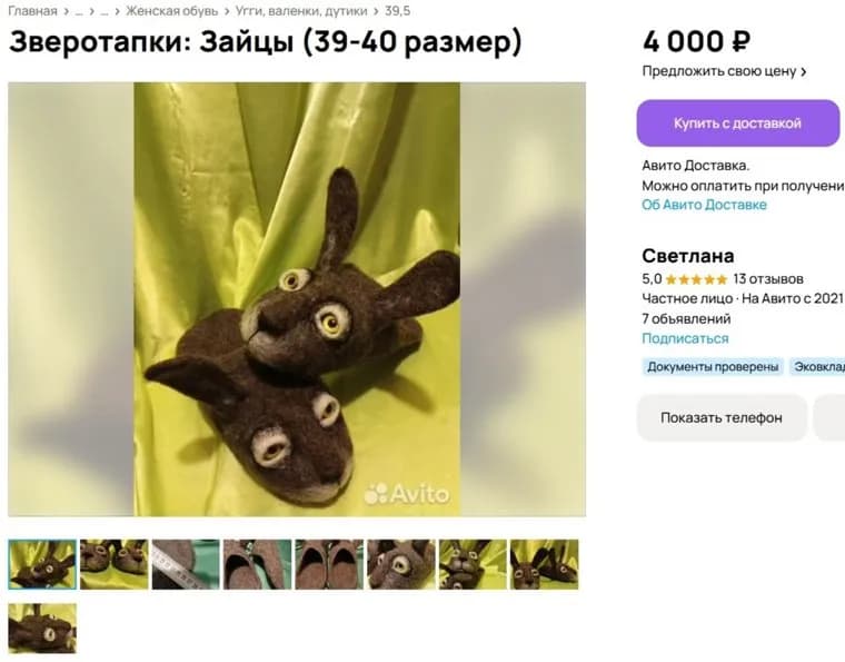 Стоит пара таких зверотапок от 4 000 до 4 600 рублей. Занимается их изготовлением мастерица уже несколько лет, в ее профиле на сайте объявлений указан рейтинг «5,0». Некоторые горожане делятся отзывами на изделия.