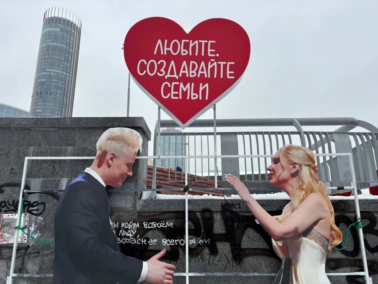 В Екатеринбурге на Октябрьской площади установили необычный арт-объект с изображением главы «Лиги безопасного интернета» Екатерины Мизулиной и певцом «Шаманом» (Ярослав Дронов), которые на днях публично заявили об отношениях. Инсталляцию заметил корреспондент URA.RU.