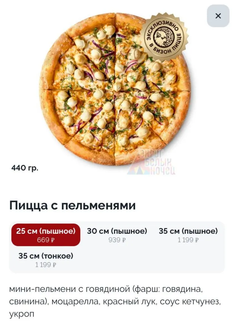 В ЯНАО начали продавать эксклюзивную пиццу с пельменями. Скрин
