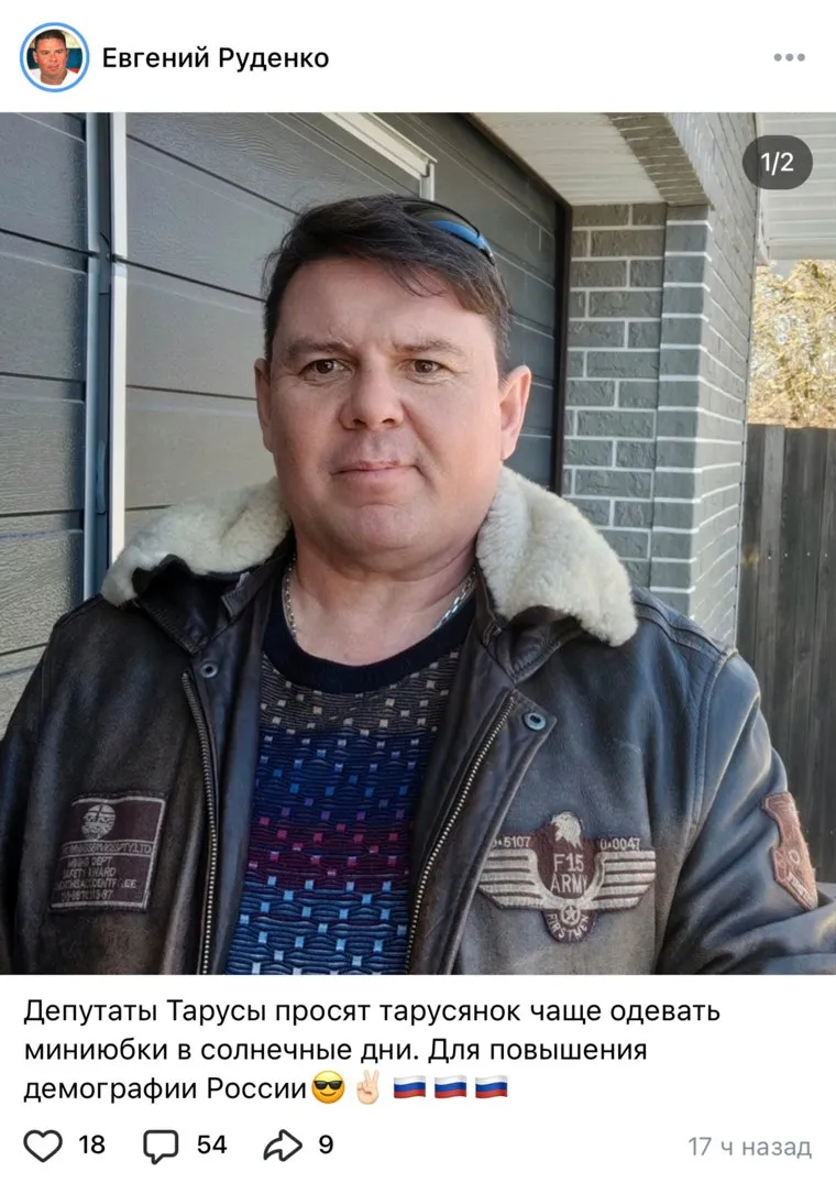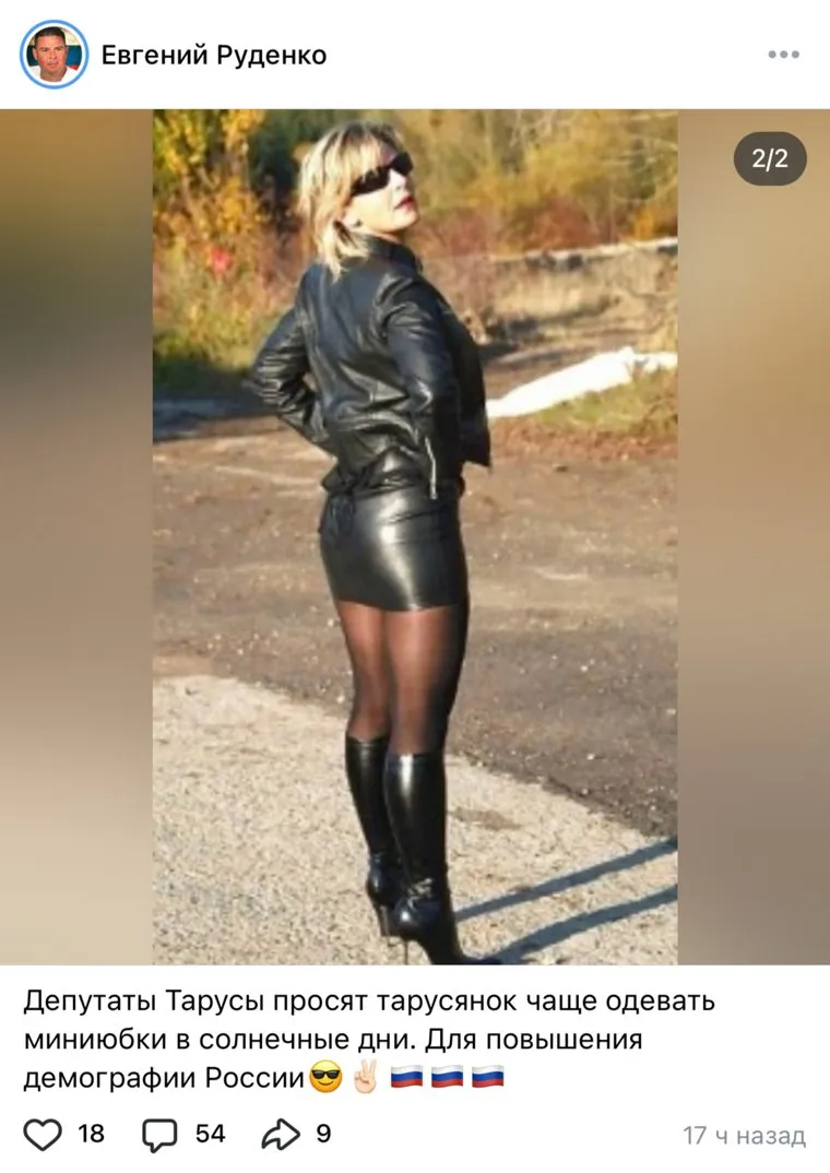 «Депутаты Тарусы просят тарусянок чаще одевать мини-юбки в солнечные дни», — написал Руденко. Он подчеркнул, что такая мода может позитивно повлиять на демографическую ситуацию в стране.