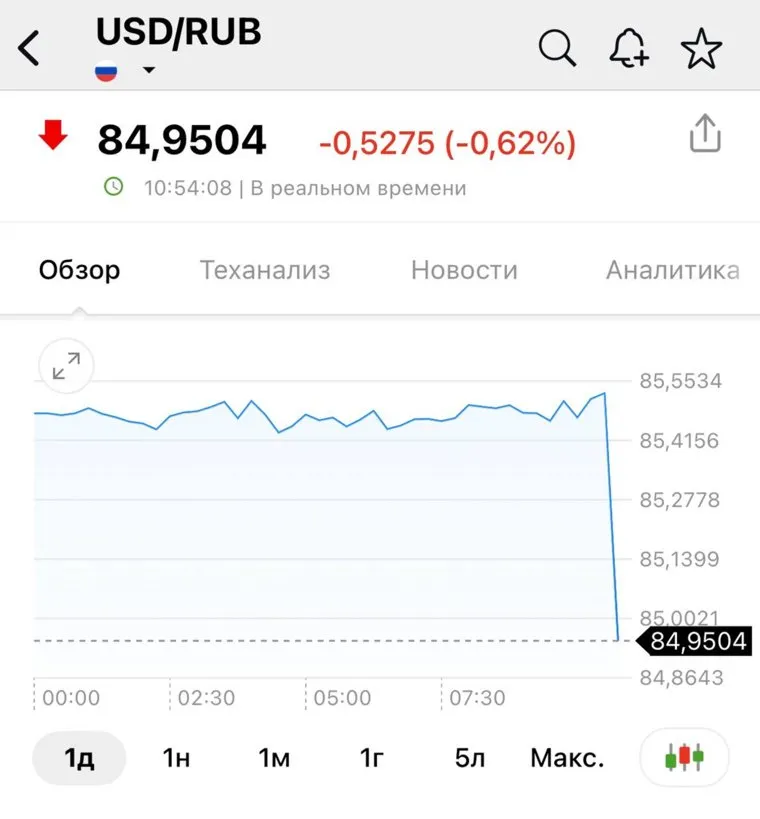 Доллар упал до 85 рублей. Скрин