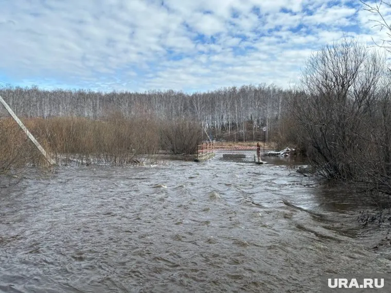 13:55 17.03.2025 Из-за паводка под Челябинском между поселком Рощино и деревней Ужовка Сосновского района закрыли для проезда и прохода мост. Уровень воды поднялся настолько, что качели на дереве утонули.