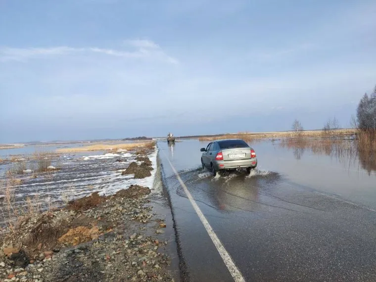 Вода перелили дорогу около поселка в Нагайбакском районе