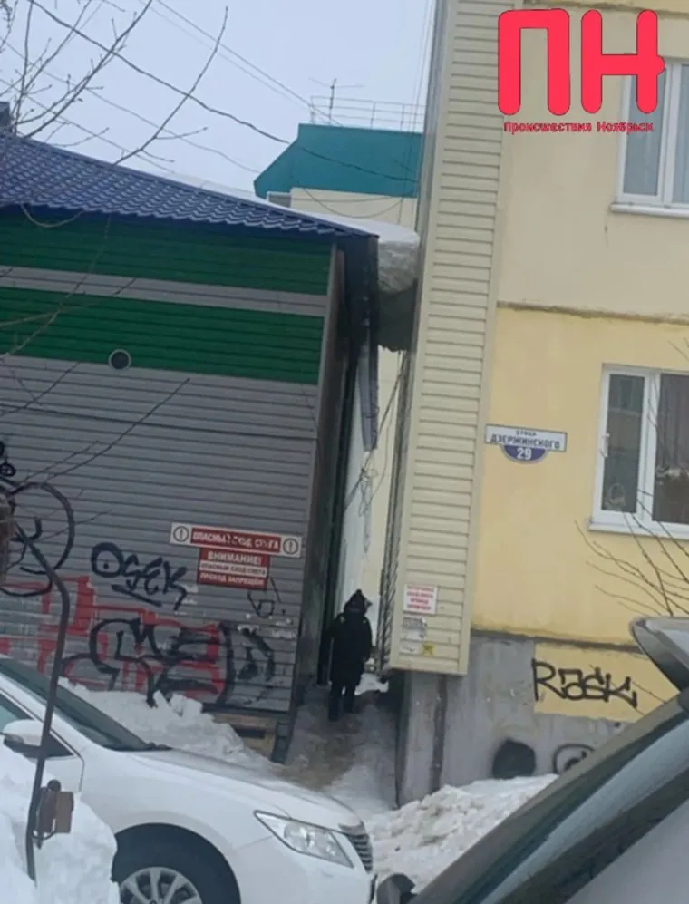 «Улица Дзержинского, 31А — на крыше повисла огромная глыба снега! Ежедневно здесь проходят сотни людей и детей», — сообщили в группе «Происшествия Ноябрьск» в VK.