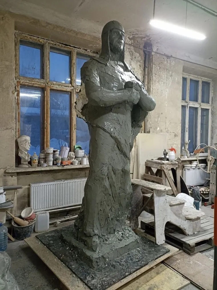 В Перми продолжаются работы над скульптурой полководца Александра Невского. Семиметровый монумент изготовлен пока только из глины. Над макетом памятника работает скульптор Сергей Путилов.