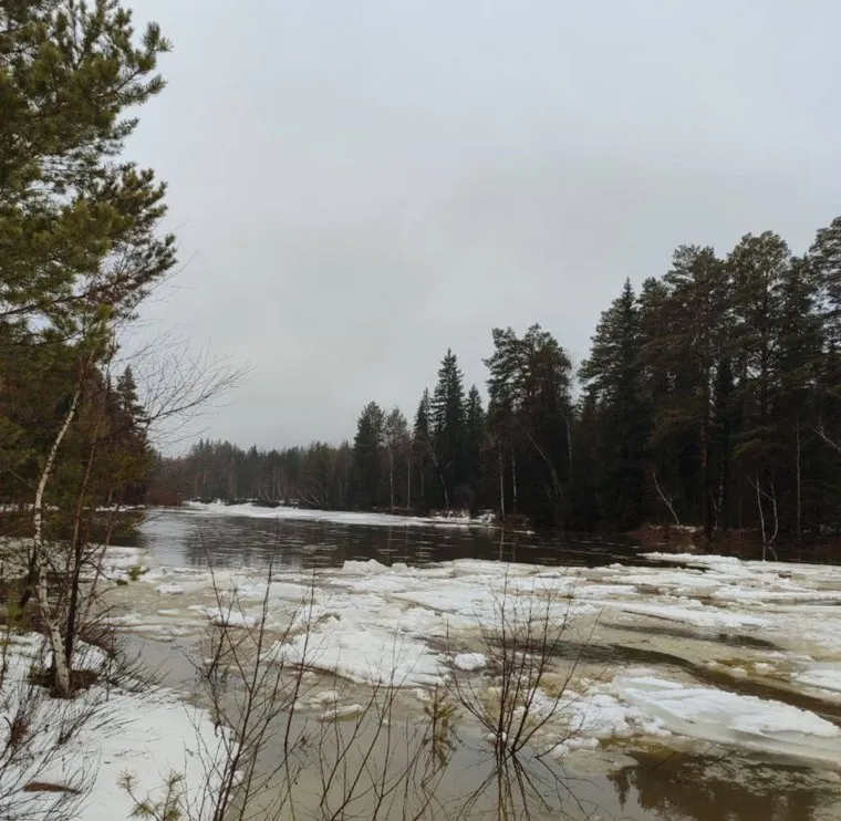 В челябинском лесу ледоход на реке начался на 2,5 недели раньше срока. Фото