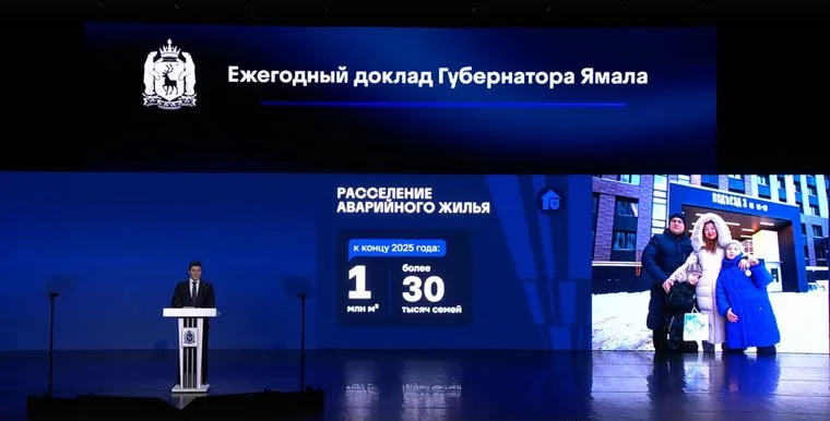 «В этом году полностью решим проблему аварийного жилья в Новом Уренгое. Всего Ямал должен расселить миллион квадратных метров деревянного квадратного фонда, задачу решим в этом году», — сообщил Артюхов со сцены Ямальской филармонии в рамках ежегодного послания.
