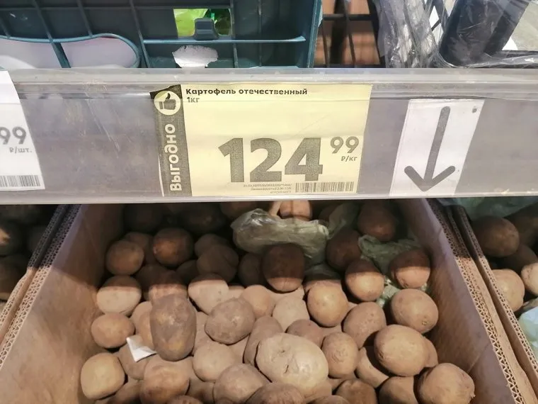 «Судя по ценам, картошка стала деликатесом. Фото от 20.03.2025. Картофель весовой обычный, отечественный, немытый, не свежий урожай», — сообщает автор поста в группе «ЧП Сургут» во ВКонтакте, подтверждая сообщение фотографией с ценником в 124 рубля. Другой пользователь соцсети заявляет о цене в 137 рублей за кило картошки в другом сетевом магазине.