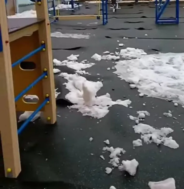 «Асфальт везде растаял, не успевают засыпать ямы», — комментирует горожанин. Мужчина жалуется, что покрытие на детской площадке после схода снега оказалось деформированным.