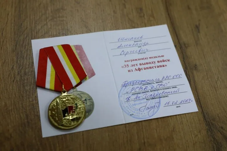 «Заместителю командира по тылу 122-го мотострелкового полка 201-й дивизии Александру Шмакову вручили юбилейную медаль „35 лет вывода войск из Афганистана“. В горячей точке Александр Сергеевич служил почти два года. Председатель заводской общественной организации союза ветеранов Афганистана и СВО Николай Дубровин поблагодарил ветерана», — сообщает telegram-канал.